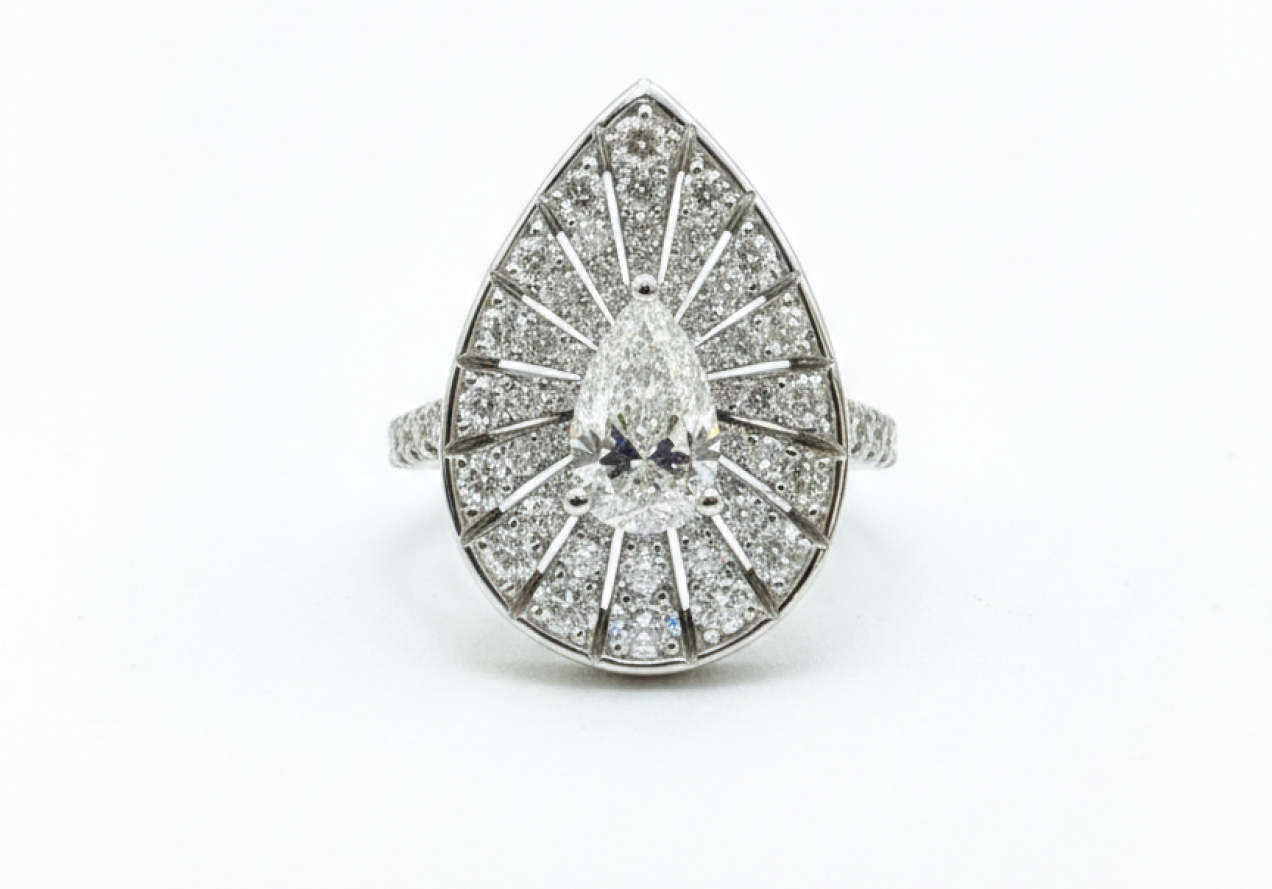 DÉMAR "SUNRISE" COLLECTION: PEAR CUT DIAMOND AND LARGE PAVÉ RING