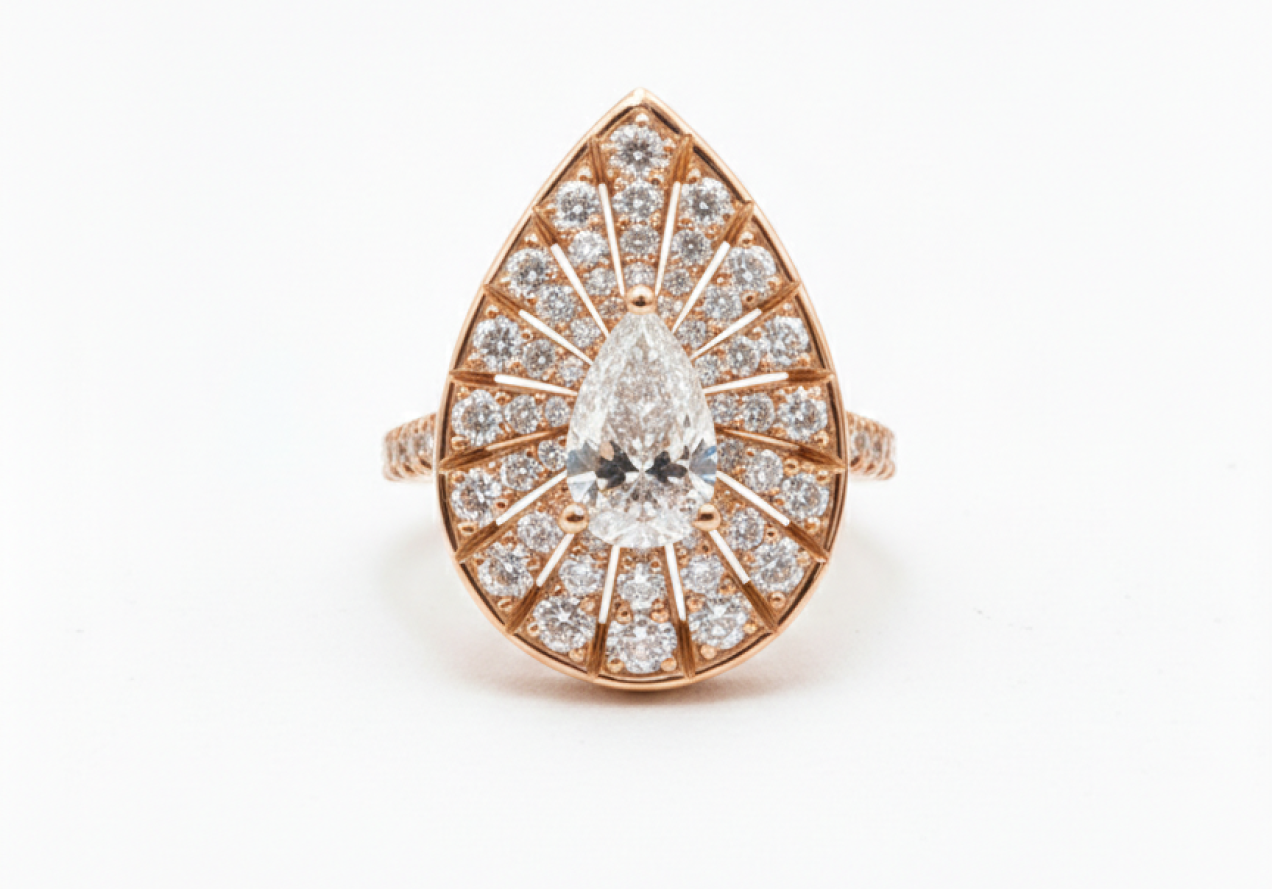 DÉMAR "SUNRISE" COLLECTION: PEAR CUT DIAMOND AND LARGE PAVÉ RING